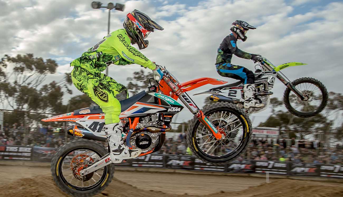Photo 1: Jay Marmont duels with Jesse Dobson in the SX1 Class at the 2016 Melbourne Round. Credit Aaryn Minerds Media.