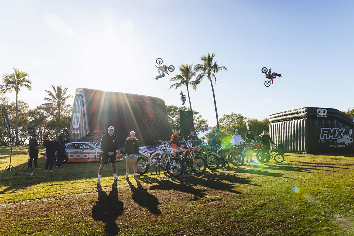 MORETON BAY, QLD – The 2025 Boost Mobile AUSX Supercross Championship has launched in jaw-dropping style, with a world-first FMX quarter pipe airbag stunt headlining a land, sea and air media moment at Sandstone Point Hotel.
