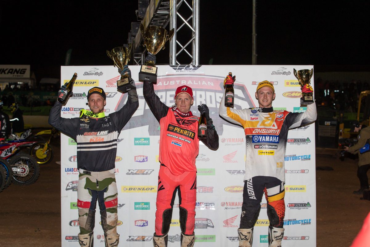 In what can only be described as a dominant performance, the Penrite Factory Honda Team celebrated wins in both respective championship classes last night at Round Two of the Australian Supercross Championship. Consequently, team director Yarrive Konsky is optimistic in looking forward but noted that there are still plenty of points on offer at the remaining rounds of the championship.