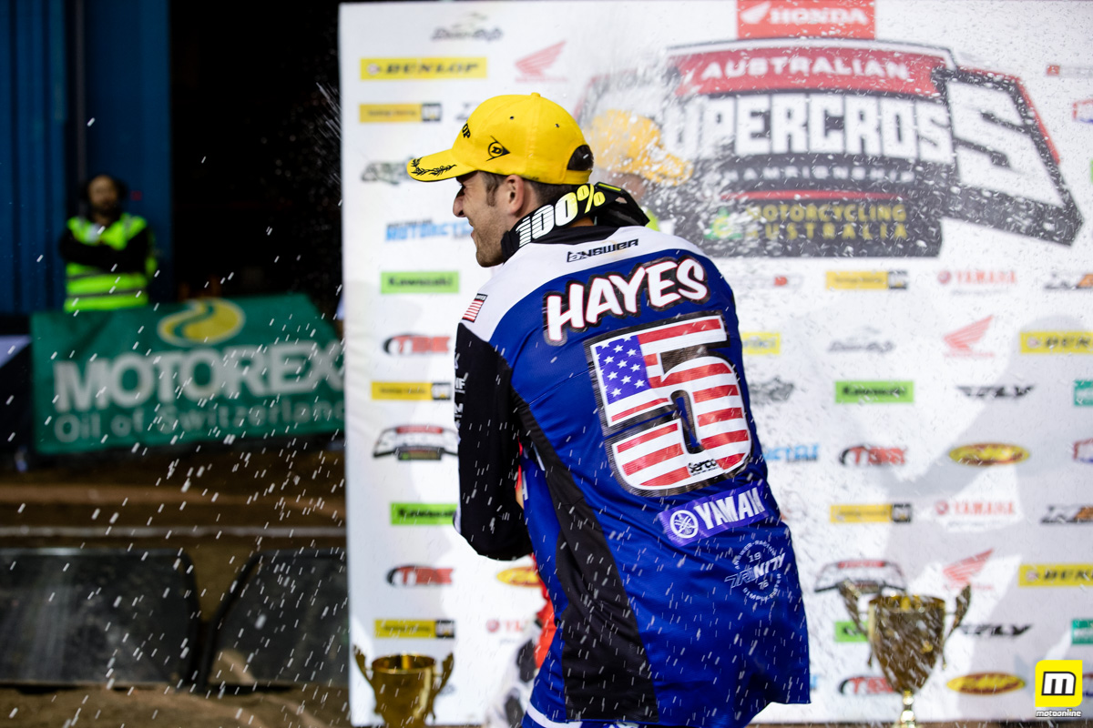 After receiving the call up from Serco Yamaha to compete in the Australian Supercross Championship in 2019, American import Jacob Hayes jumped at the opportunity. Hayes piloted the #5 YZ 250f to a dominant main event two victory in Brisbane, and claimed the overall round win in the process.